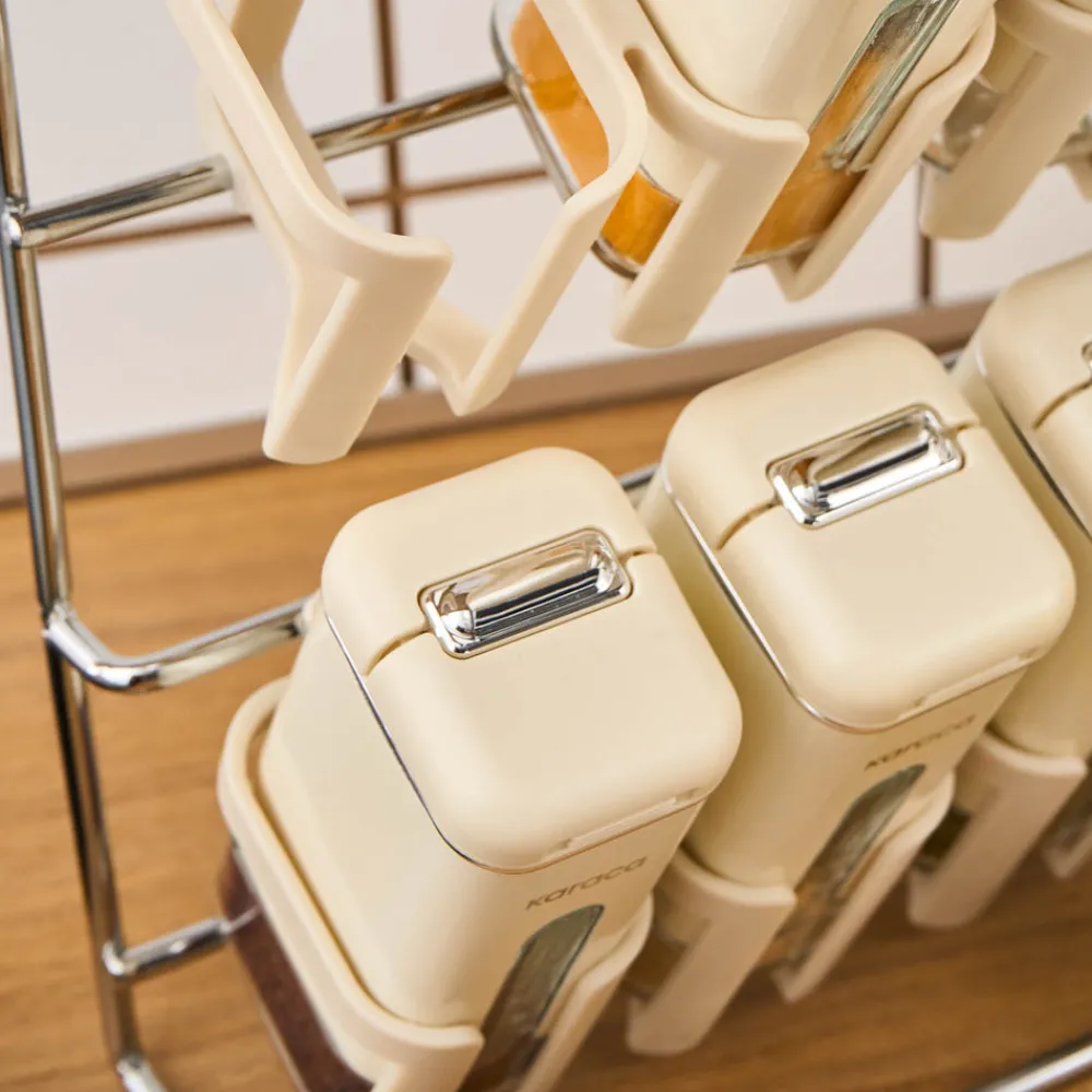 Karaca Luminous 9-Piece Porcelain Spice Jar Set, Cream