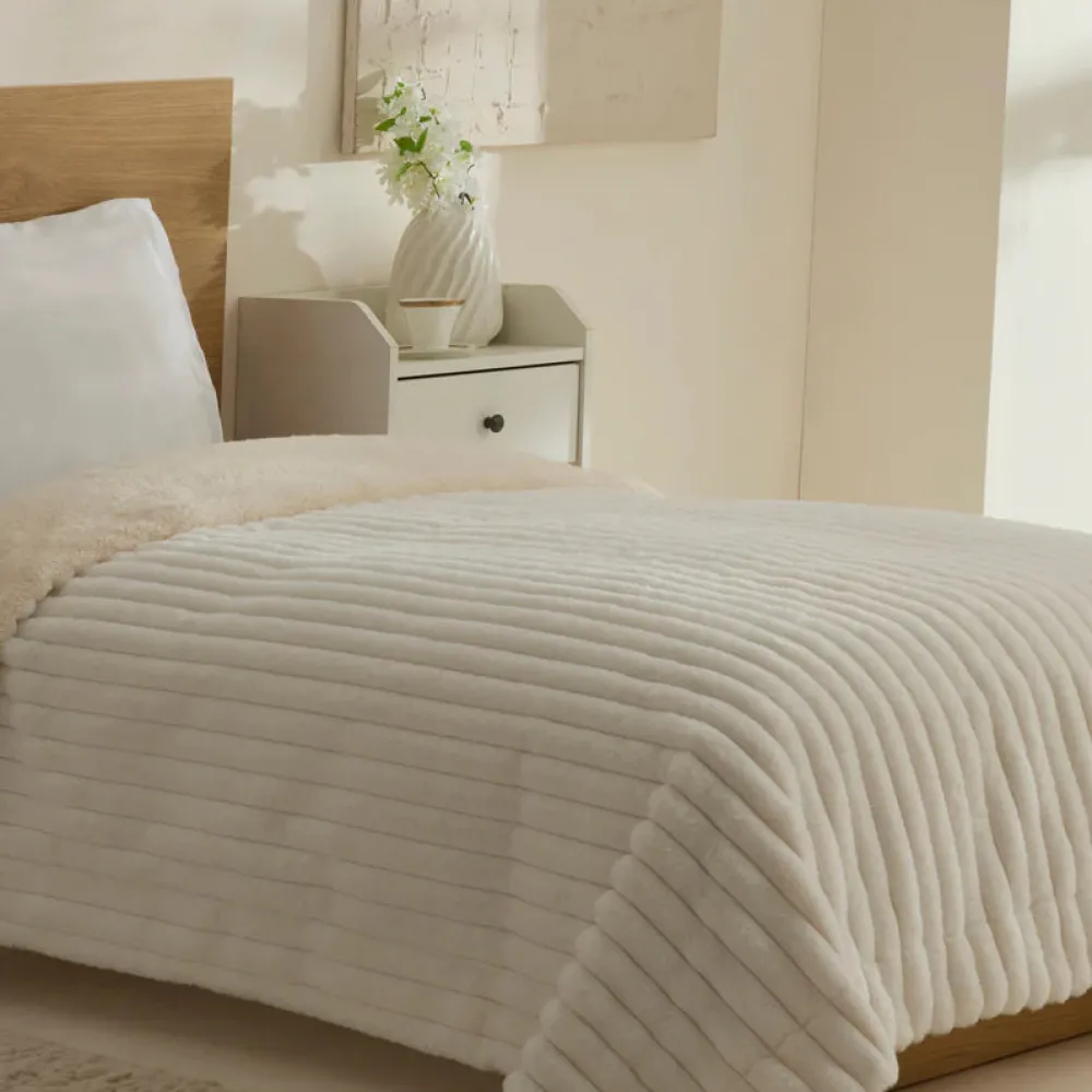 Karaca Stripe Sherpa Blanket, 150x200cm, White