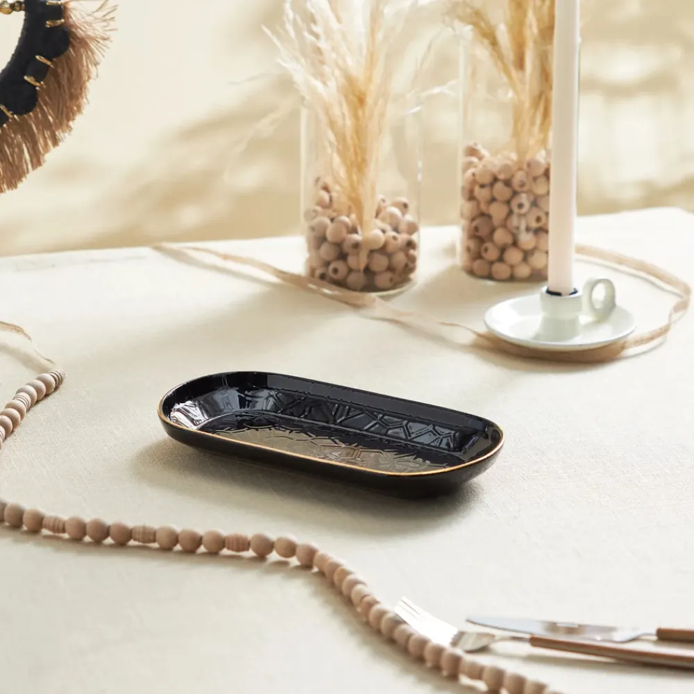 Karaca Calvin Ceramic Serving Platter, 26cm, Black Multi