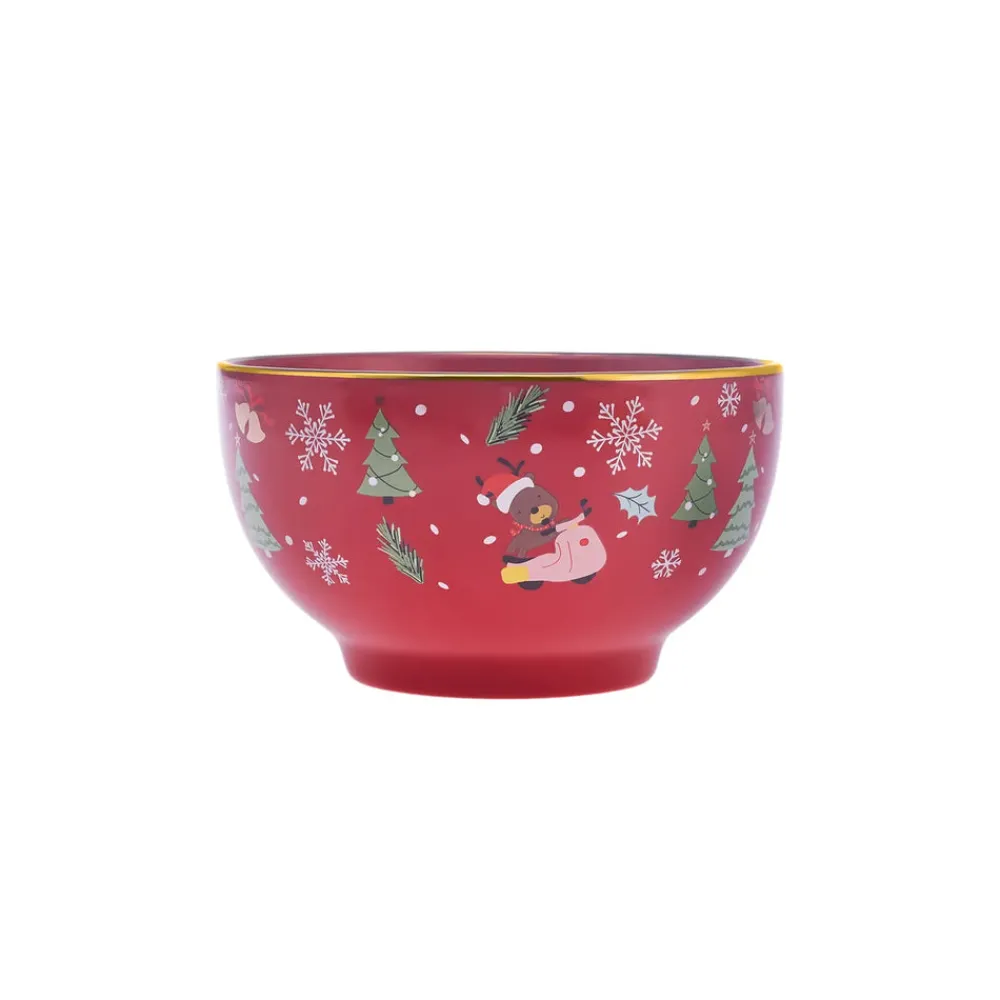 Karaca New Year Christmas New Generation Bone Golden Line Noodle Bowl, 14cm, Red Multi