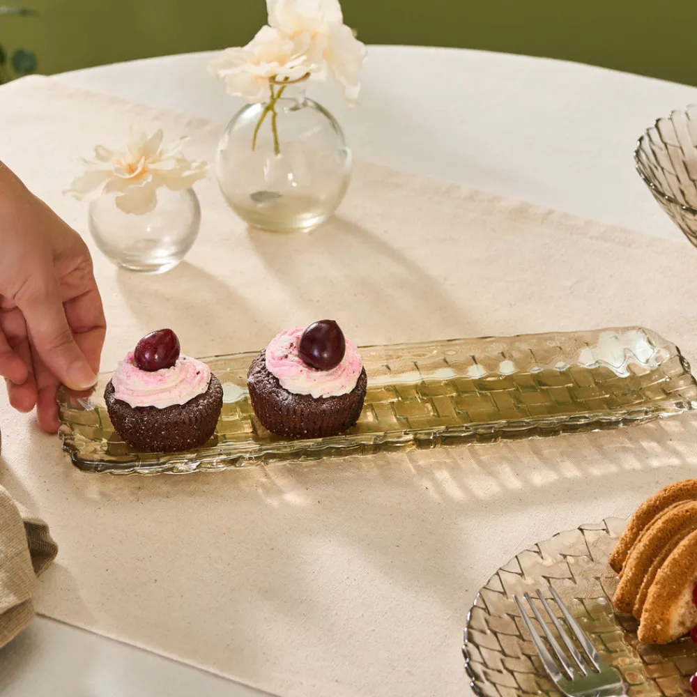 Karaca Braid Lustrous Glass Small Serving Platter, 16×8.5cm, Luster