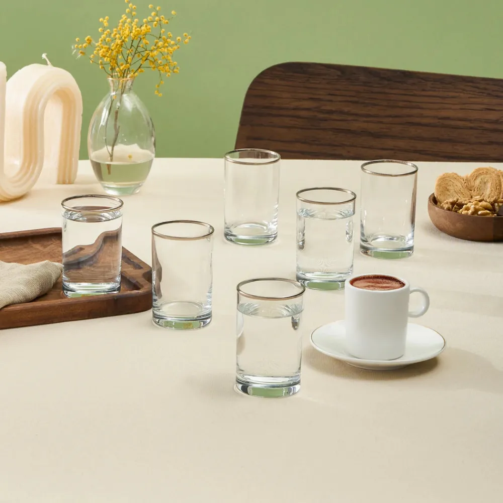 Karaca Işıl 6-Piece Glass Small Water Glass Set for 6 Person, 110ml, Transparent Platinium