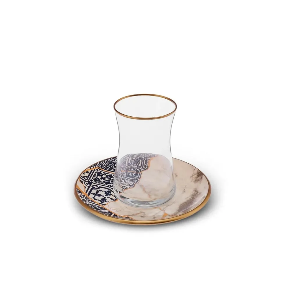 Karaca Aris 12 Piece Glass Turkish Tea Set for 6 People, 150ml, Multi