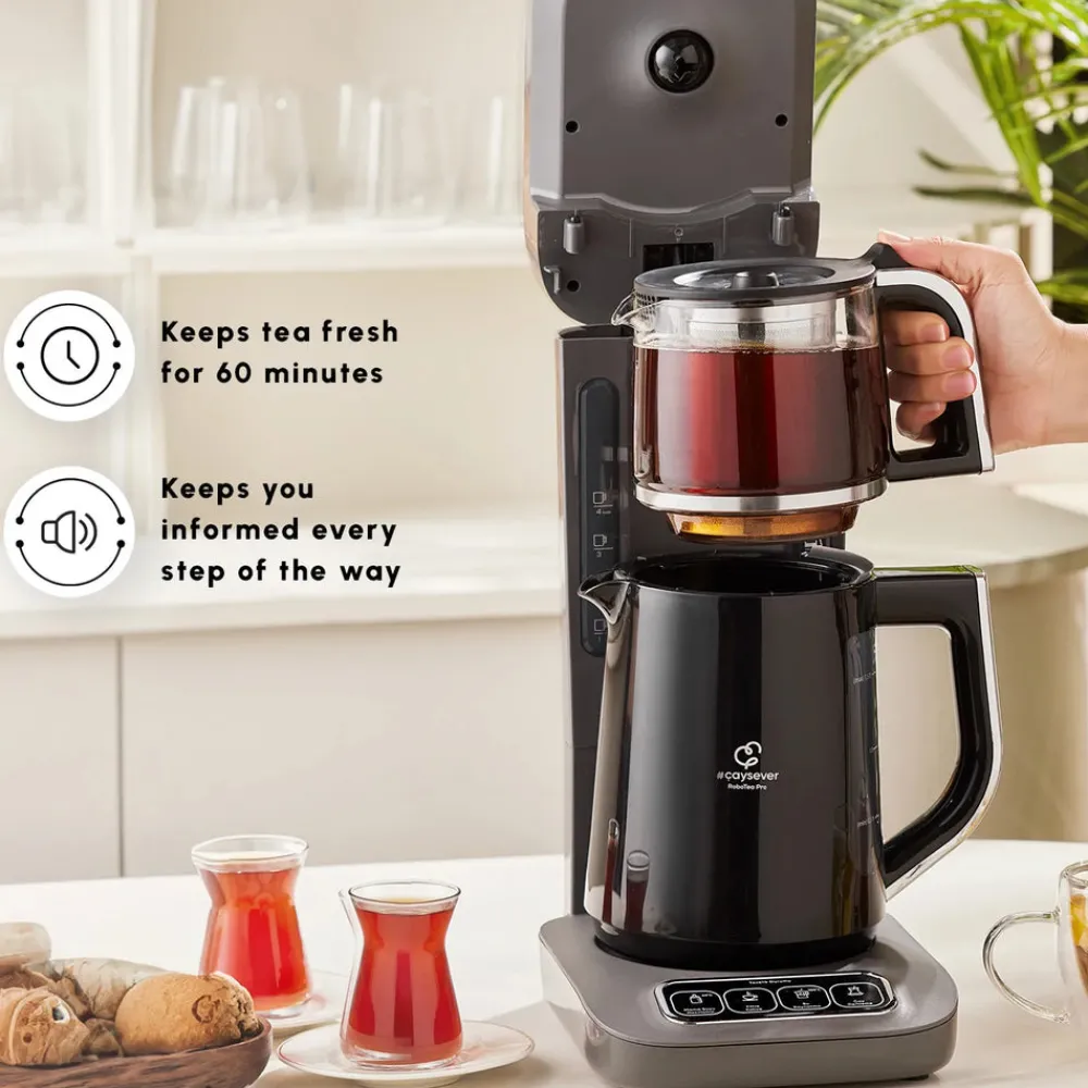 The Caysever Robotea Pro brews your tea in 15 minutes with the flavour-guaranteed distillation technique and ensures that the tea develops its full aroma without burning the tea leaves. At 90 degrees, your tea stays fresh with ideal colour and flavour for 60 minutes. You can also monitor the freshness of your tea with the light indicator that shows the freshness status.