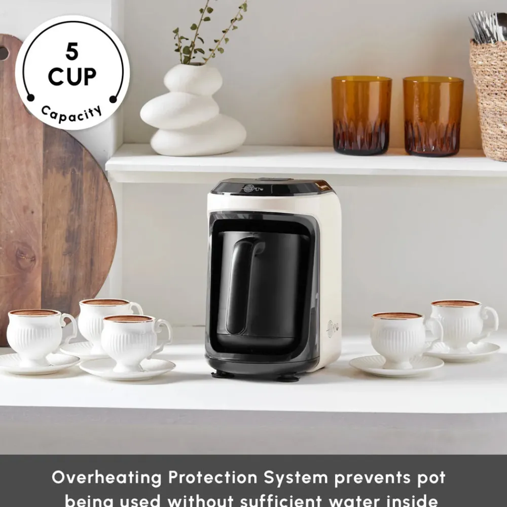 This Electric Turkish Coffee Maker is great for making roasted Turkish coffee, Turkish coffee with milk, hot chocolate with milk, and instant coffee with milk in ideal consistency. 5 cup capacity to serve your guests.