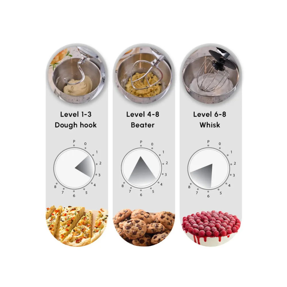 - Mixing Bowl Capacity: 5 Litre Stainless Steel