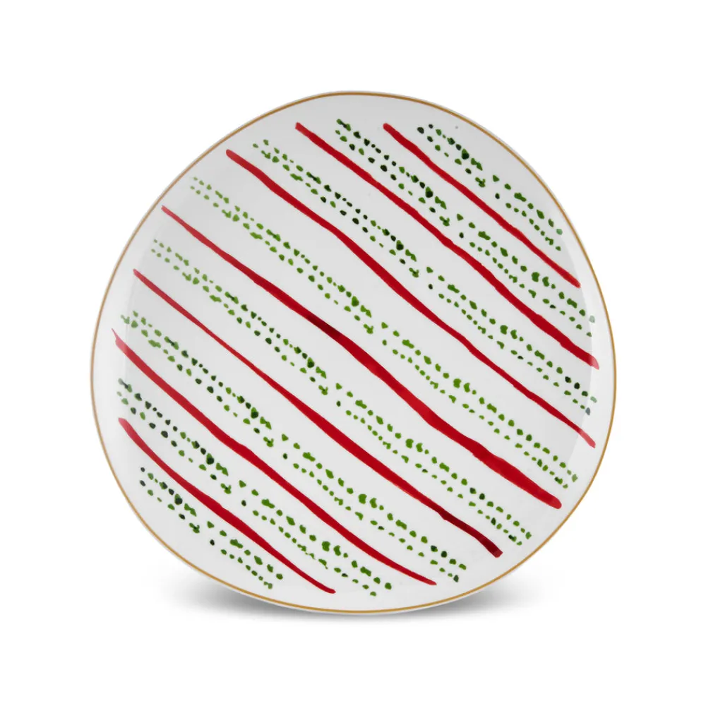 Karaca New Year Christmas Butcher’s Broom Green Dot Side Plate, 20,5cm, Multi