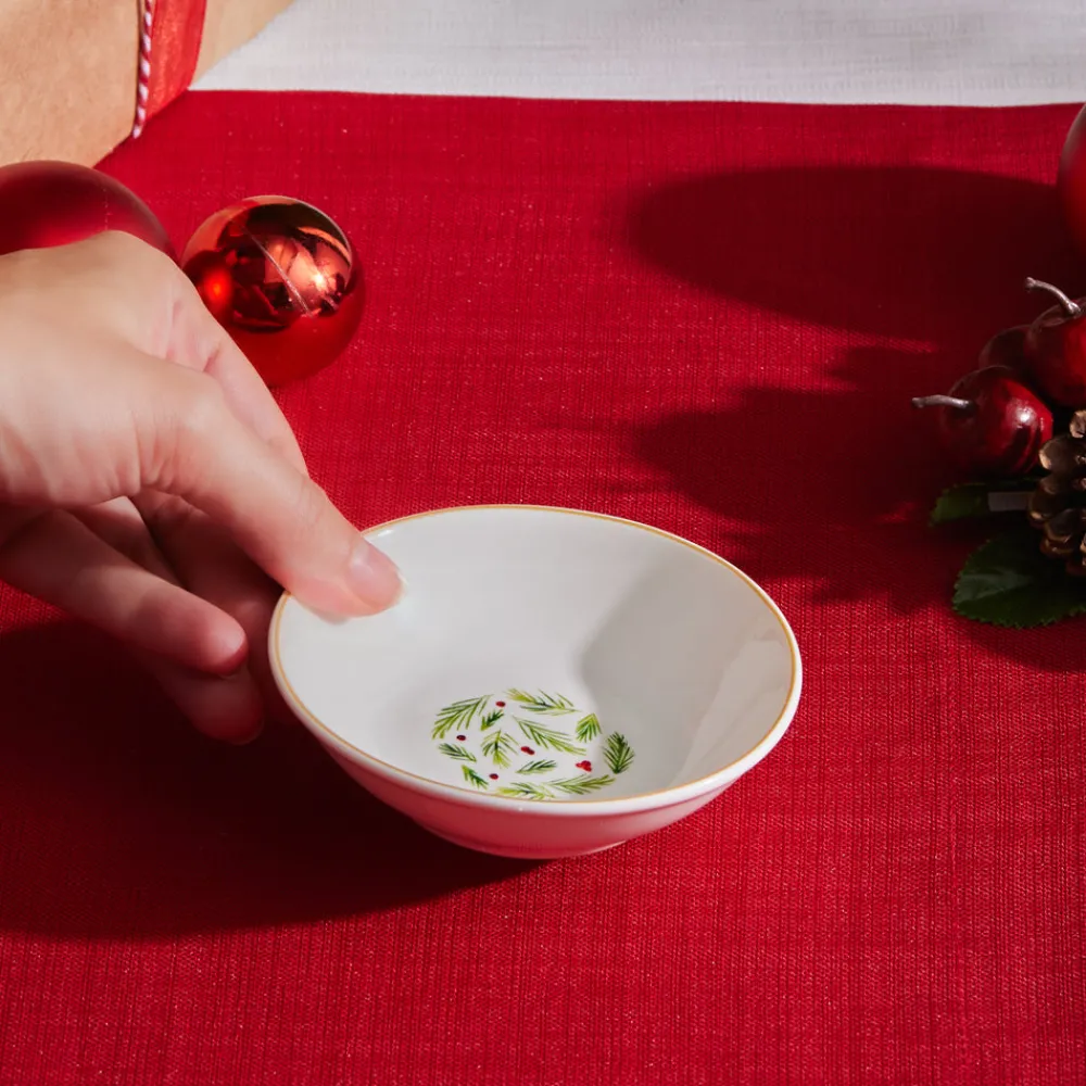 Karaca New Year Christmas Butcher’s Broom Snack Bowl, 10cm, Multi
