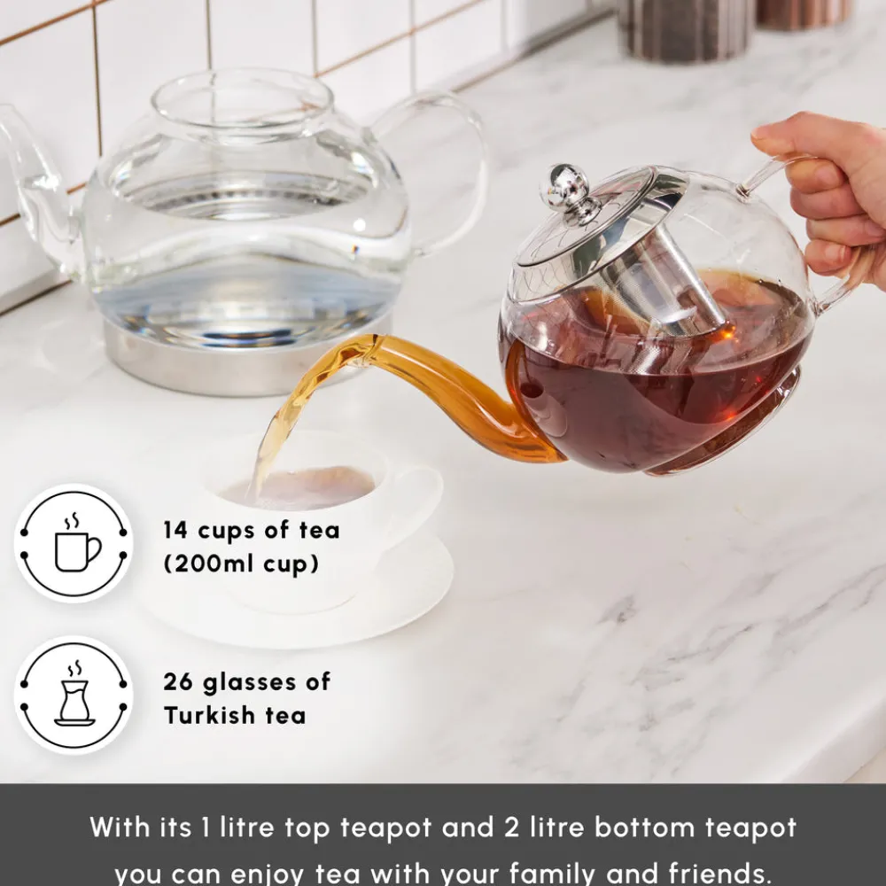 Karaca Pandora Glass Induction Teapot Set, Transparent