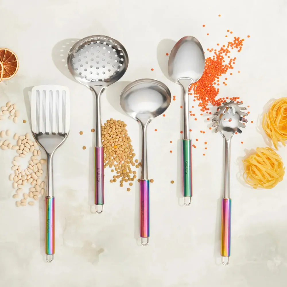Karaca Pop Up 5 Piece Stainless Steel Kitchen Utensil Set, Multi