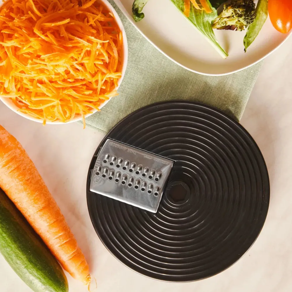 - It has 2 different stainless steel discs that provide slicing and grating functions.