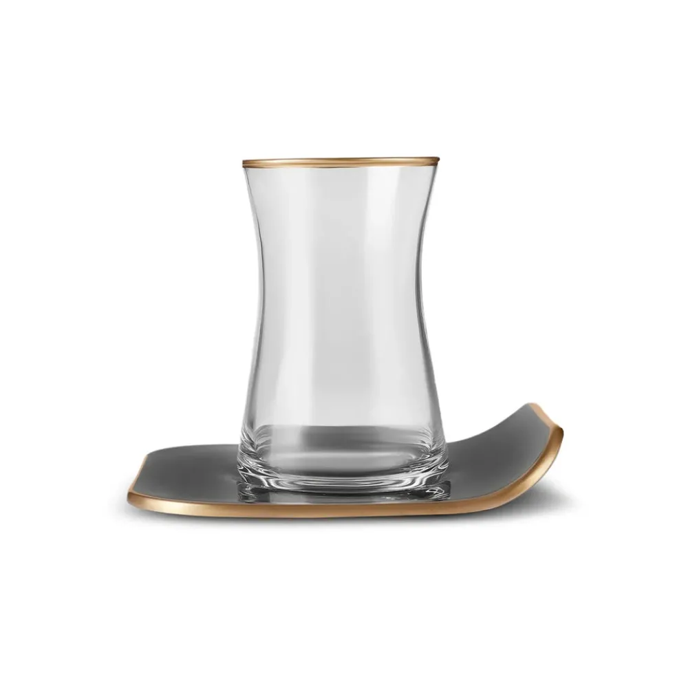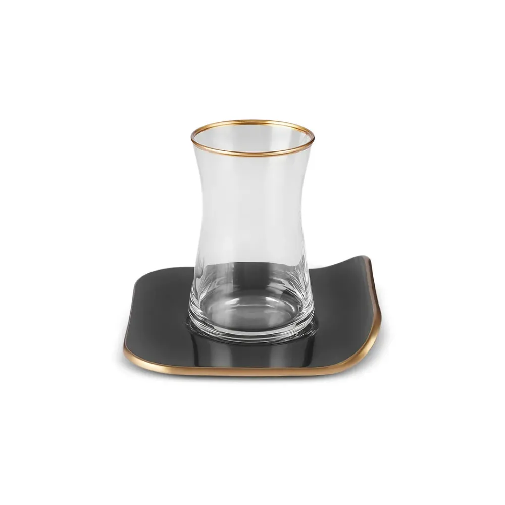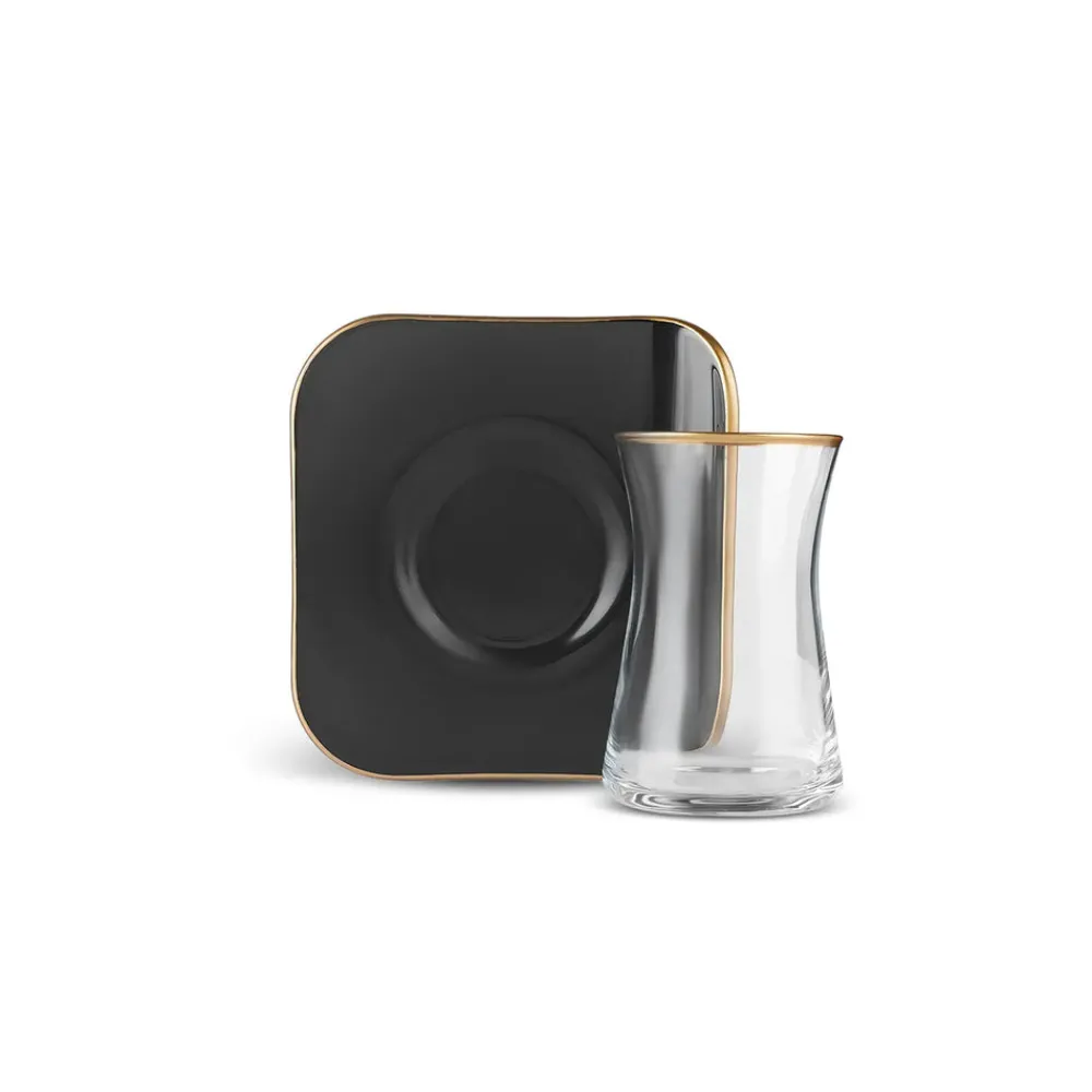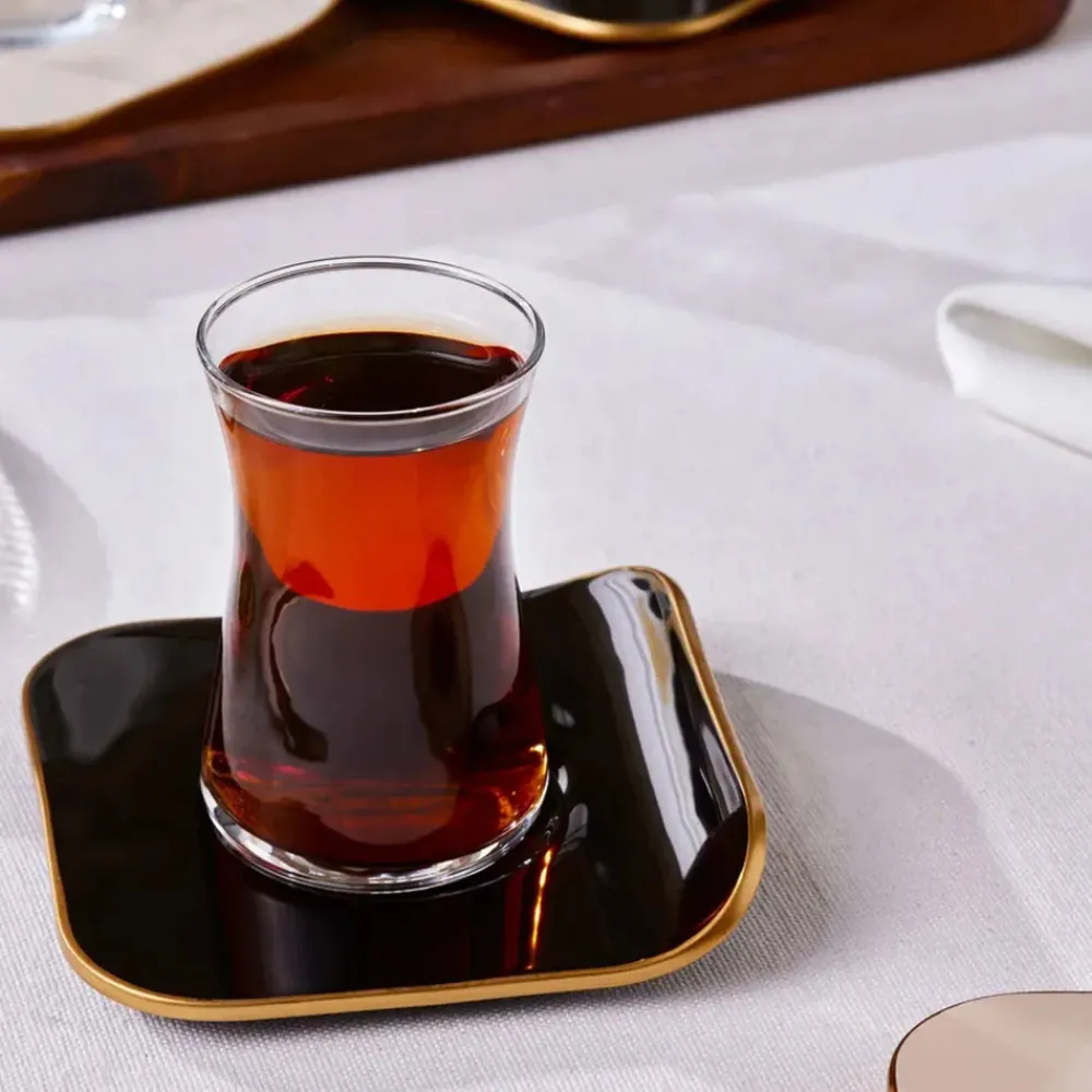 Karaca Retro 12-Piece Turkish Tea Set for 6 People, 165ml, Black