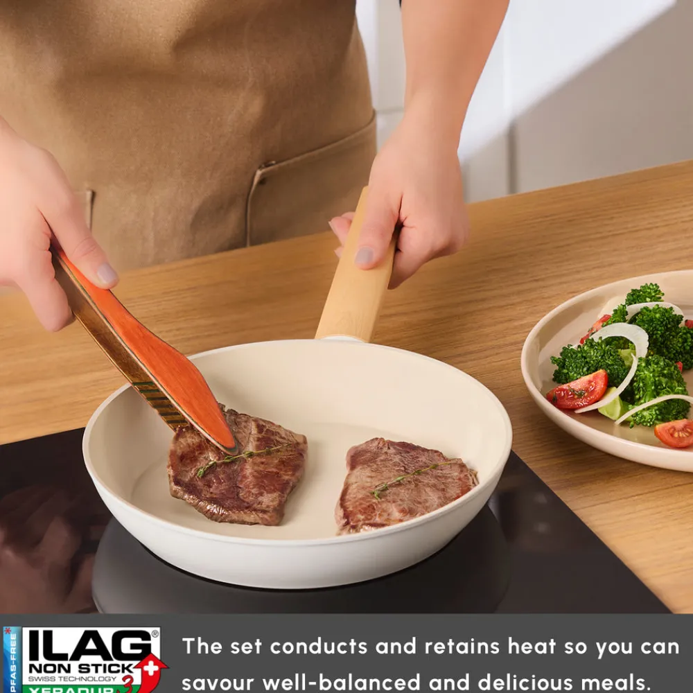 Karaca Swiss Crystal Almond 7-Piece Induction Non-Stick Cookware Set, Cream