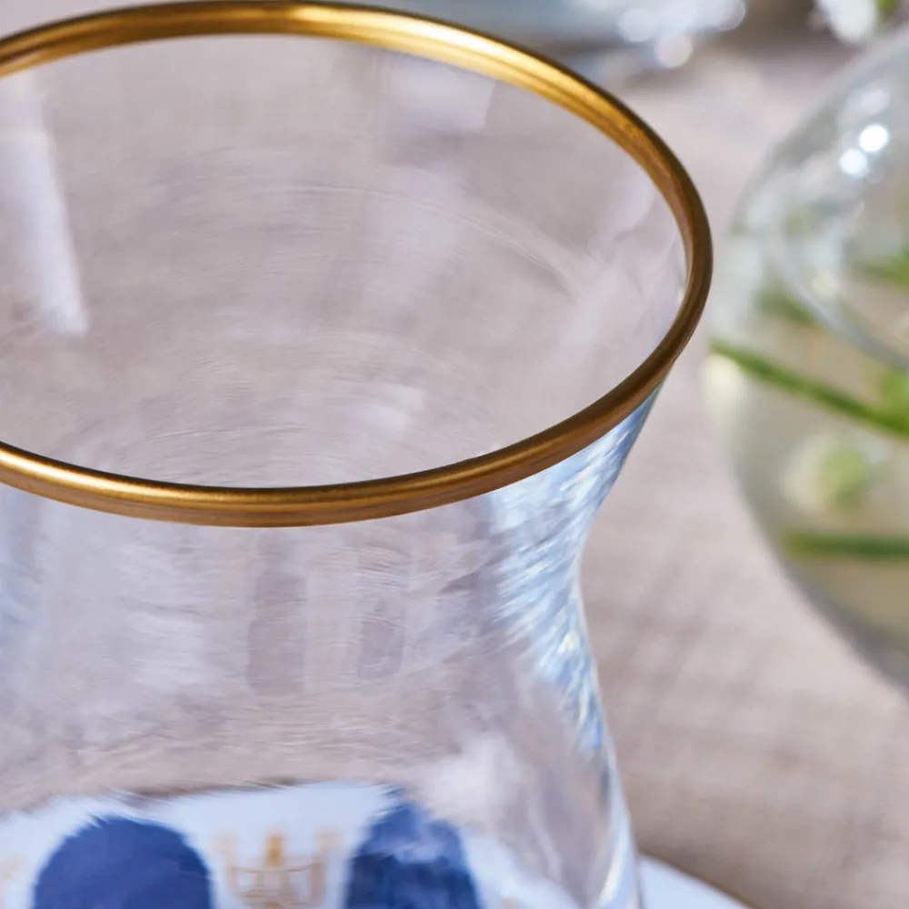 Karaca Belem 12-Piece Glass Turkish Tea Set for 6 People, 132ml, Navy