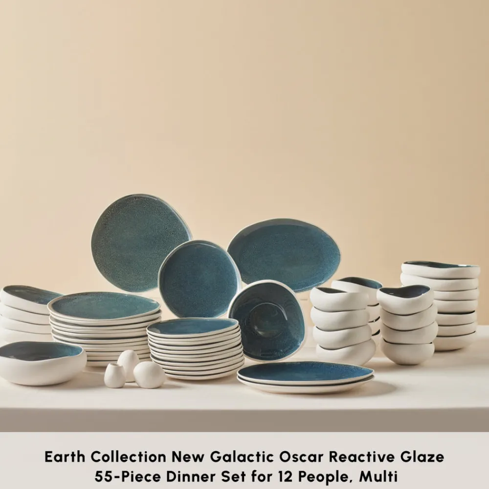Karaca Earth Collection New Galactic Oscar Reactive Glaze 55-Piece Dinner Set for 12 People, Multi