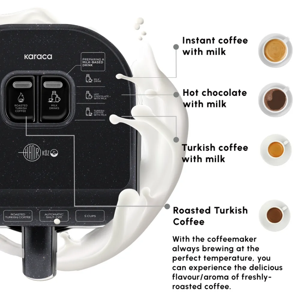 Hatır Köz prepares up to 5 cups of Turkish coffee in one go. With automatic temperature control, it ensures perfect brewing at the optimal heat and timing.