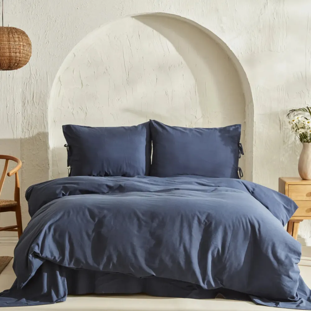 Karaca Home 4 Elements 100% Turkish Cotton Duvet Cover Set with Bed Sheet, Double, Navy Blue