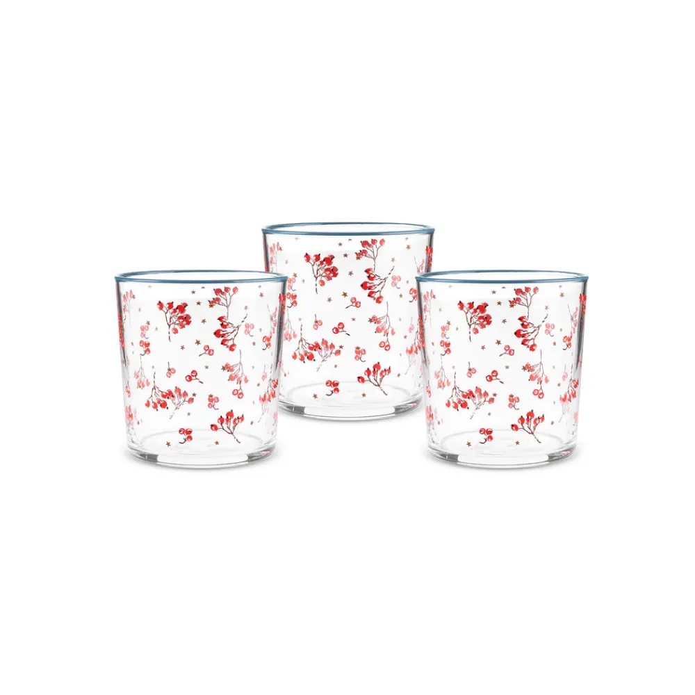 Karaca Home New Year Christmas 3-Piece Butcher’s Broom Glass Tumbler Set, 380ml, Multi
