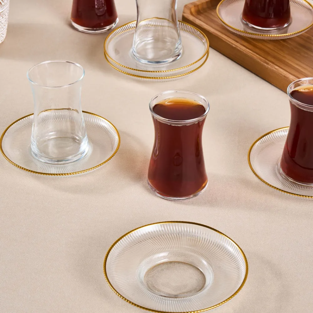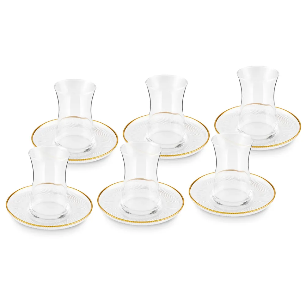 Karaca Juliet 12-Piece Turkish Tea Set for 6 People, Gold