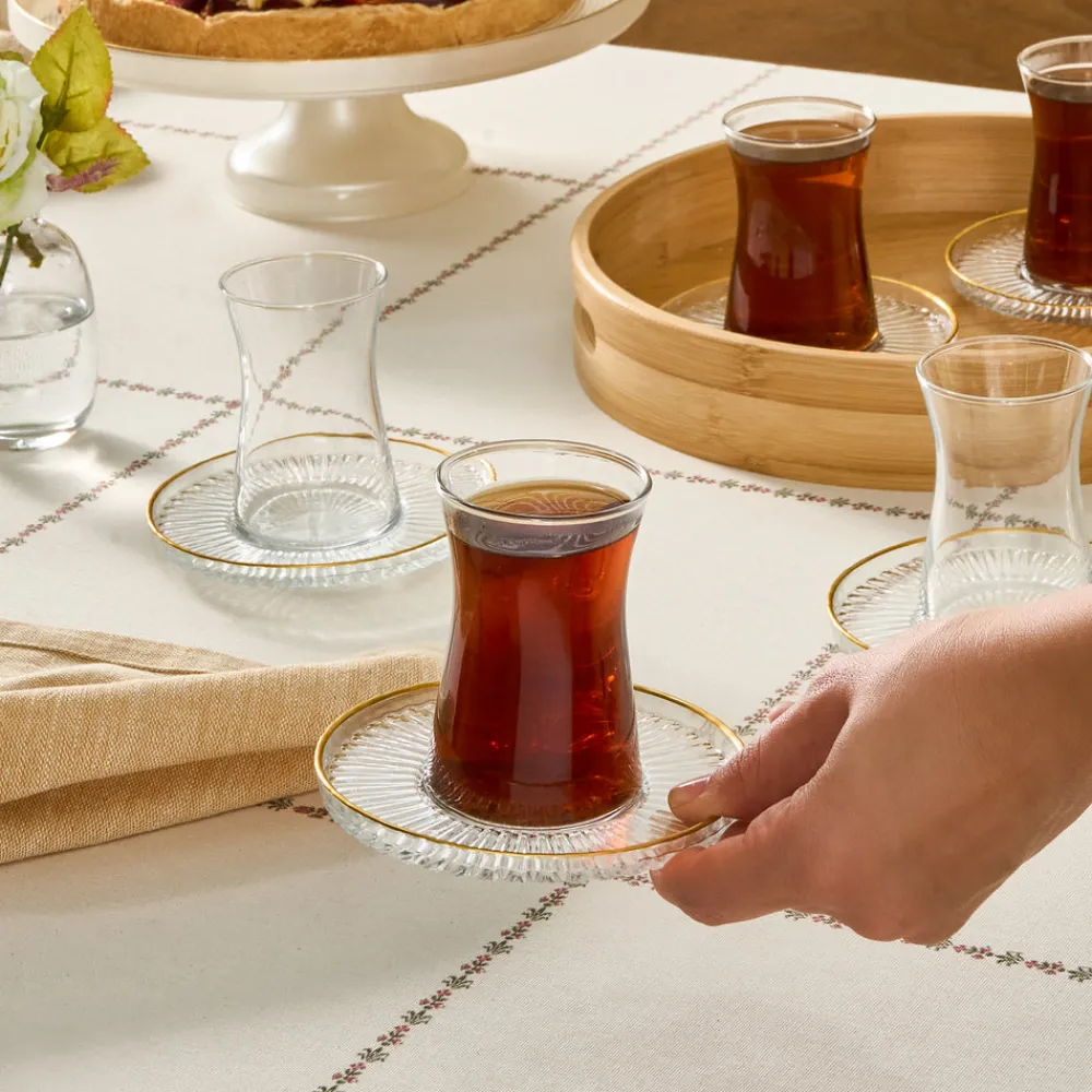 Karaca Nilufer 12-Piece Turkish Tea Set for 6 People, Transparent