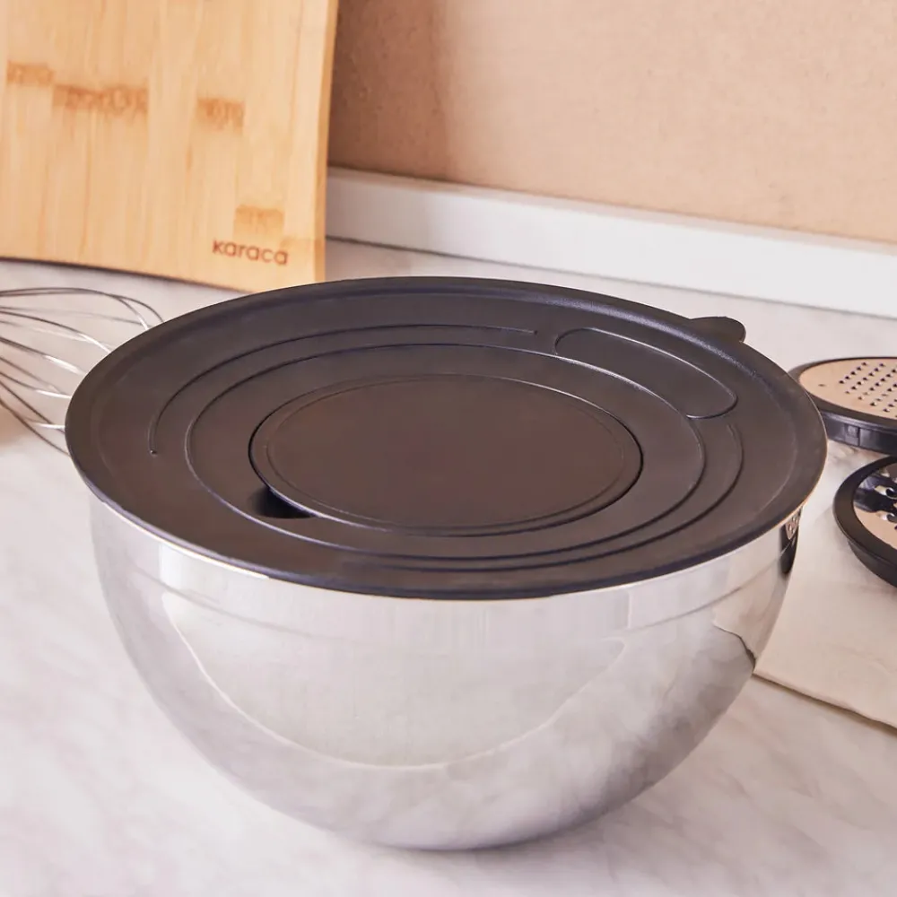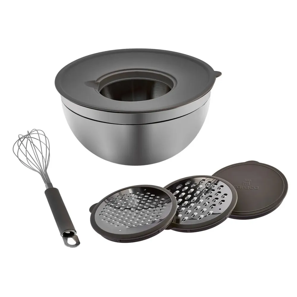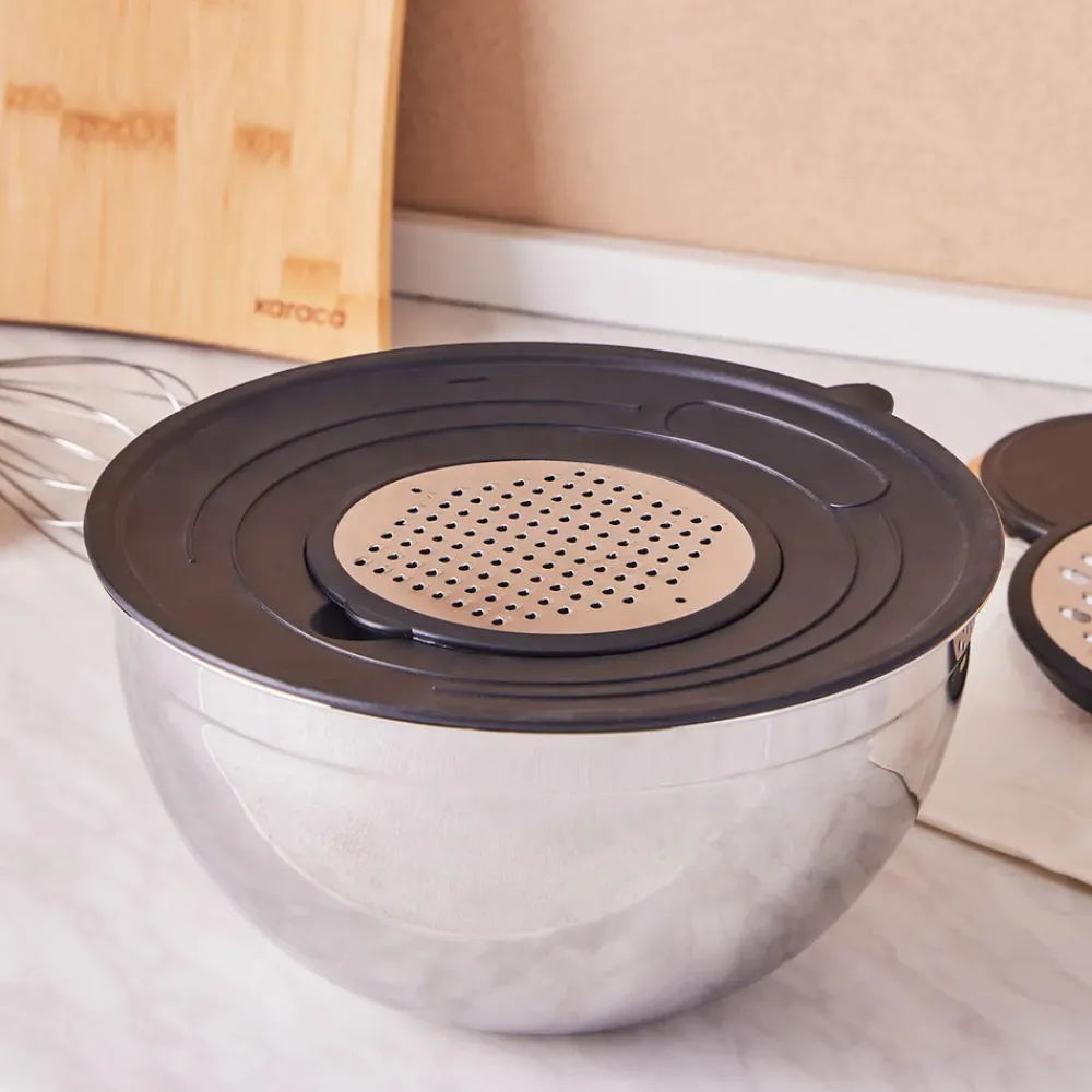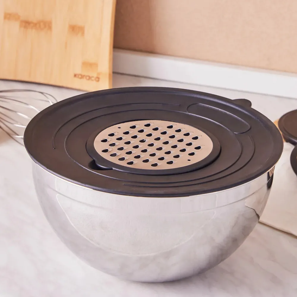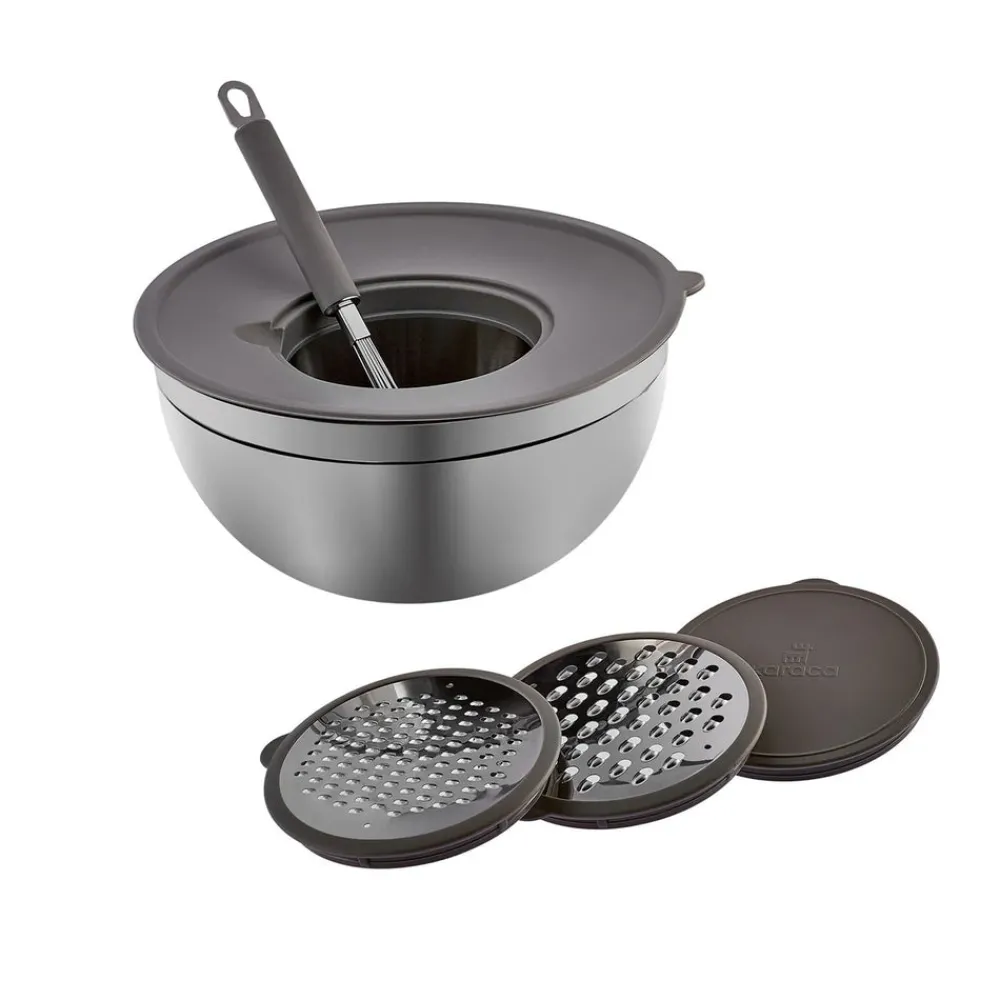 Karaca Parle Stainless Steel Mixing Bowl Set with Graters, 4.6L, Grey