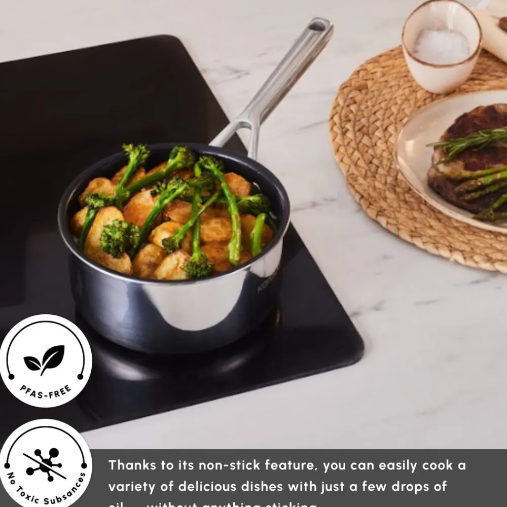 Karaca Plasma Steel 3Ply Non-Stick Sauce Pan, 18cm, Silver