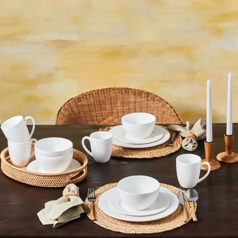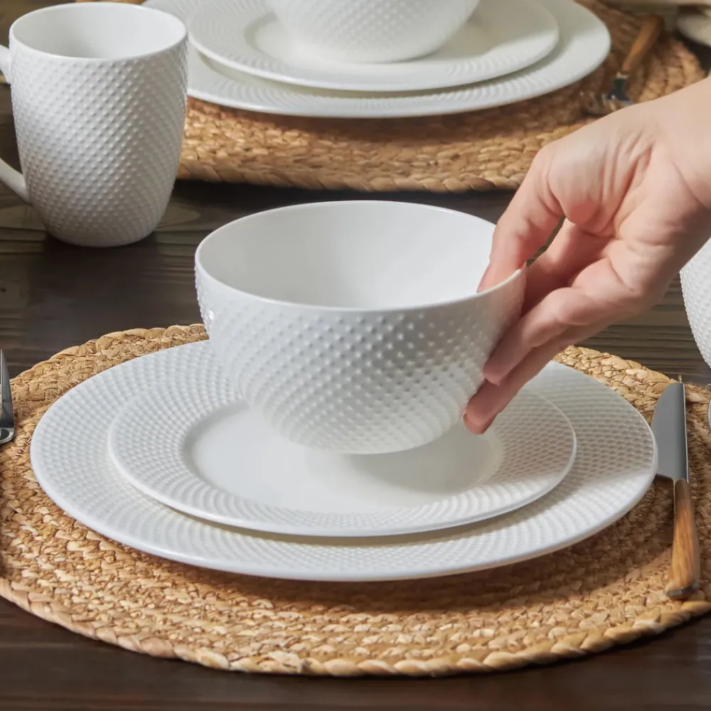 Karaca Punto Embossed 16-Piece Bone China Dinner Set for 4 People, White