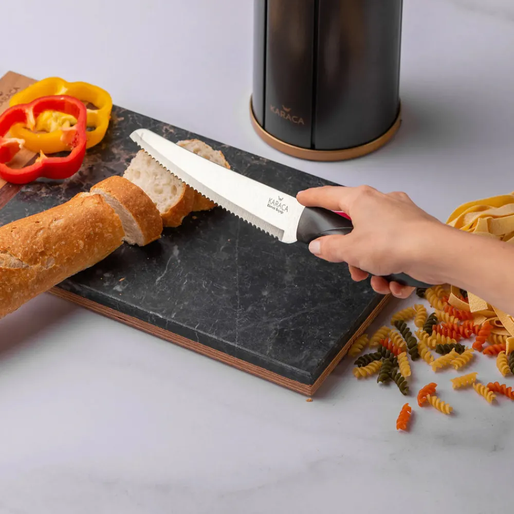 Sharp, ergonomic and functional… Both very stylish and very useful, Karaca Retro Knife Set consists of stainless steel and has a wide range of contents to meet all your needs. This knife set, which stands out with its aesthetic and practicality, will be one of the most favorite products of your kitchen with its ergonomic handle, comfortable use and special stand