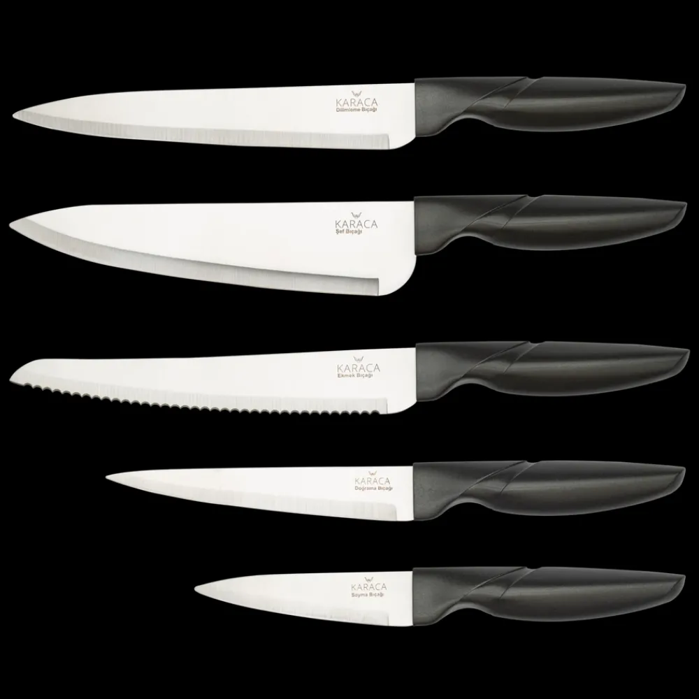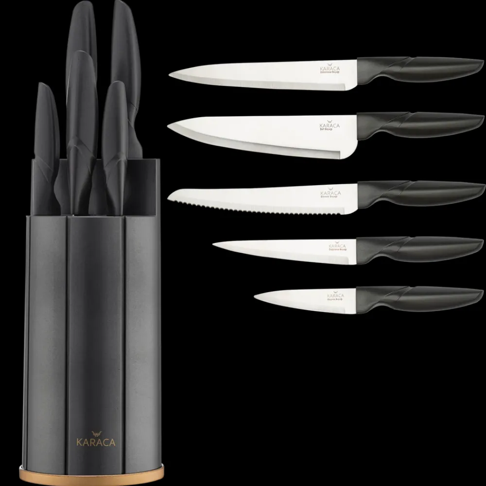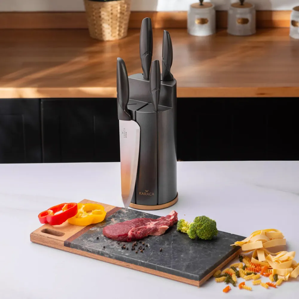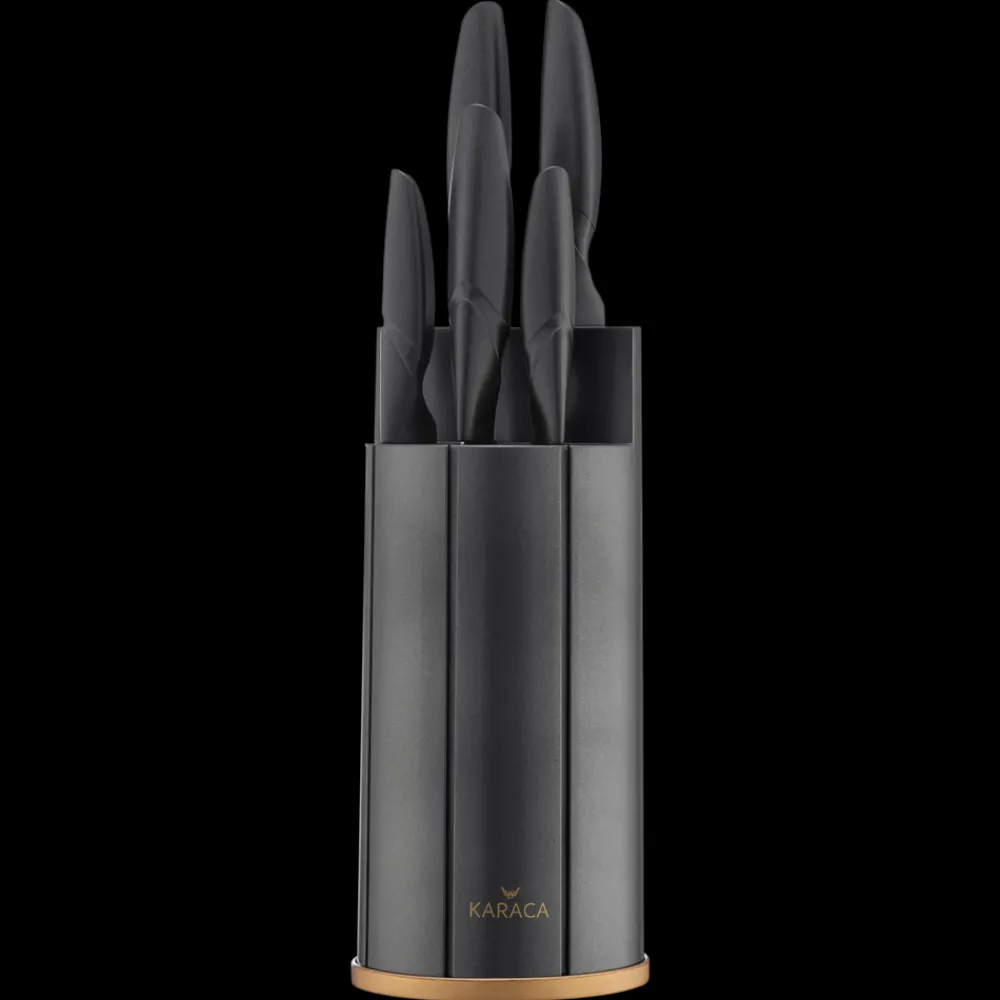 Karaca Retro 5 Piece Knife Set with Block, Anthracite