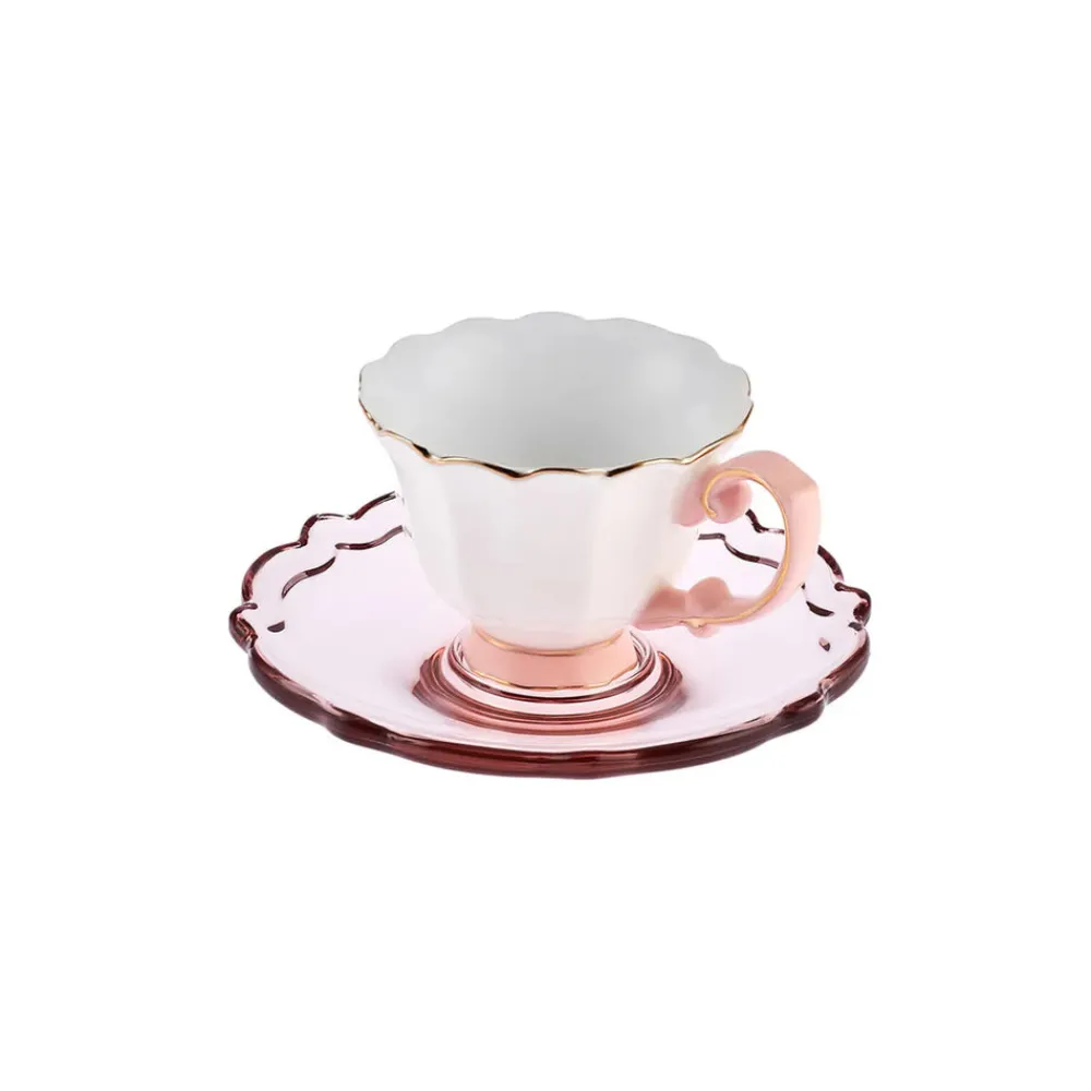 Karaca Samo 4-Piece Bone China Acrylic Plated Espresso Turkish Coffee Cup Set for 2 People, 90ml, Pink Multi