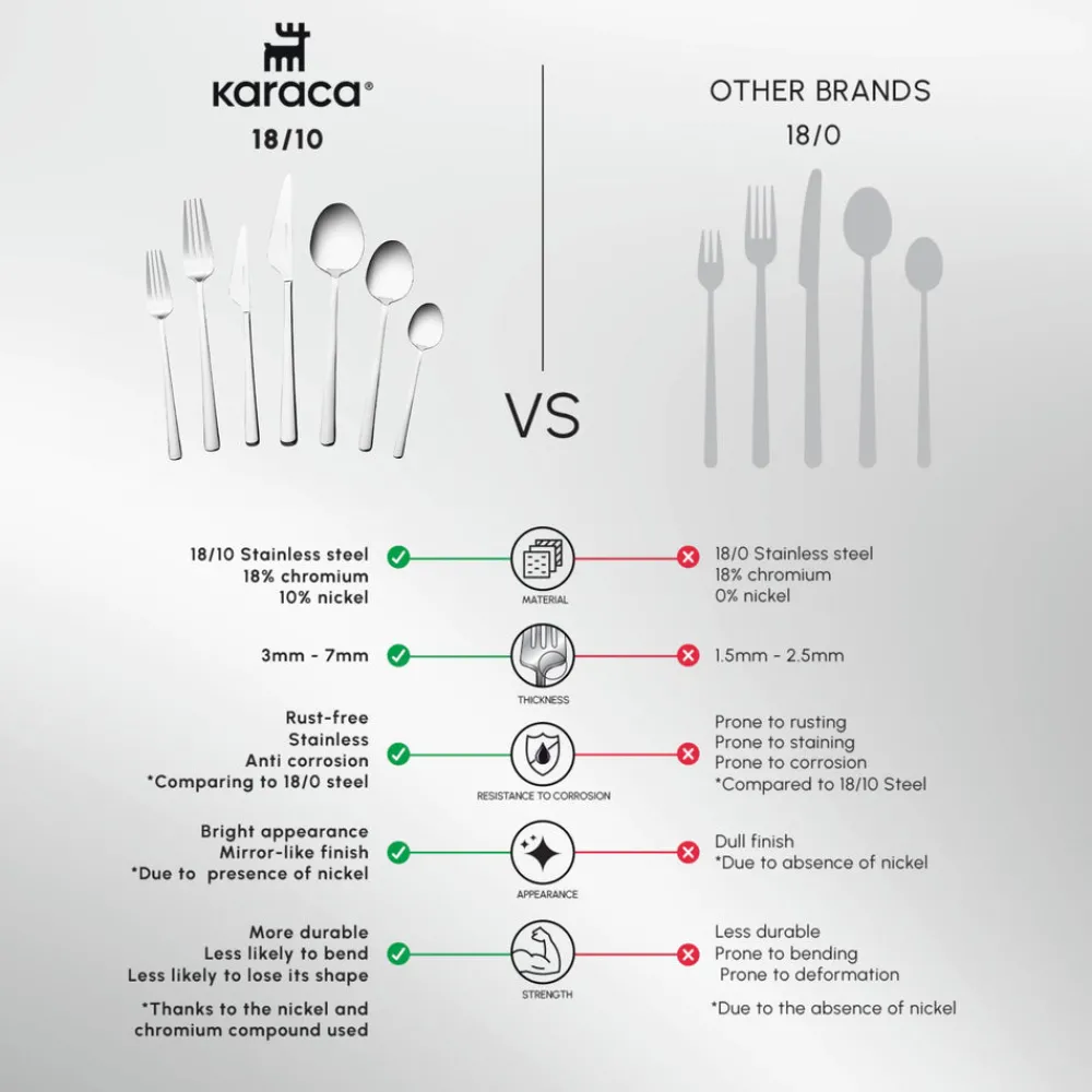 Crafted from high-grade 18/10 stainless steel, the Karaca Serena Set offers outstanding durability, rust resistance, and a polished shine that lasts. The refined silver finish adds a contemporary touch while seamlessly blending with both classic and modern table settings.