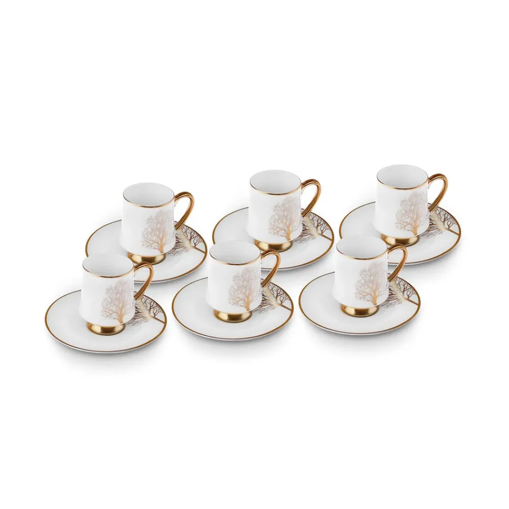 Karaca Afra 12-Piece Bone China Espresso Turkish Coffee Cup Set for 6 People, 90ml, White