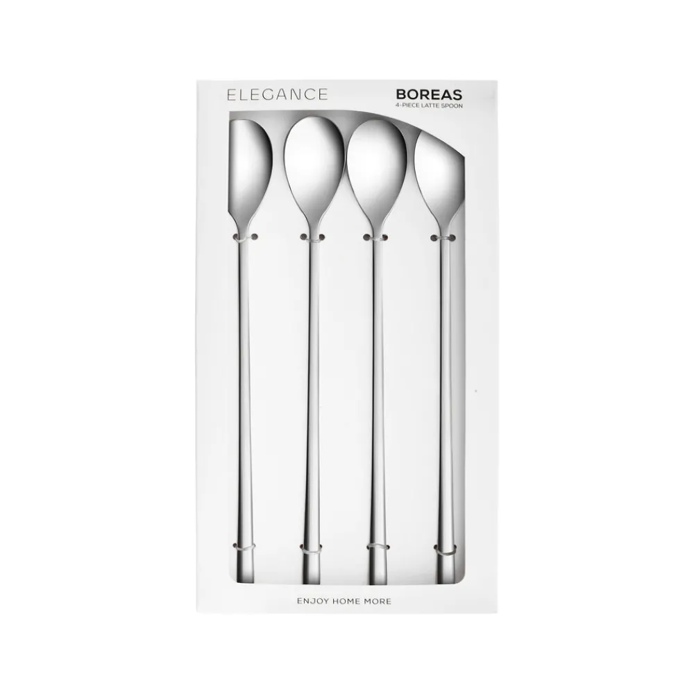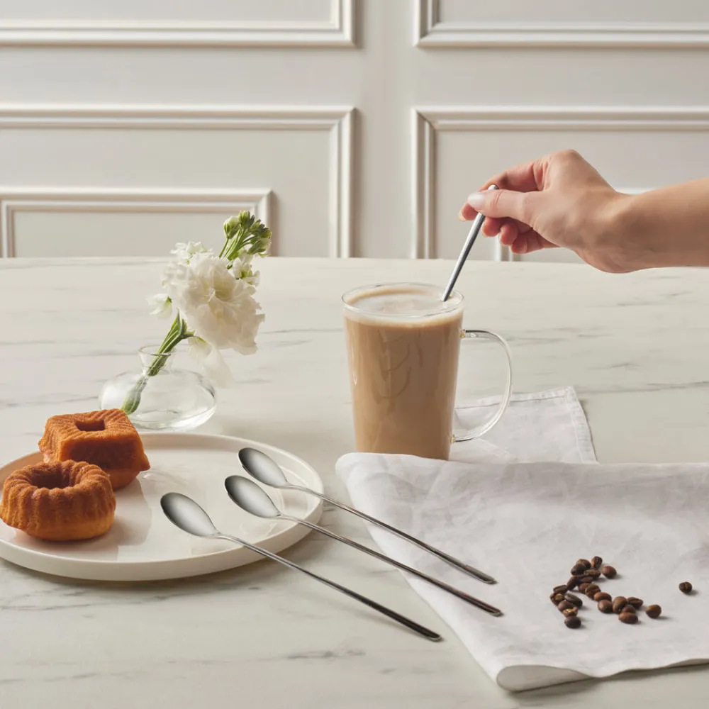 Karaca Boreas 4-Piece Stainless Steel Latte Spoon, Silver