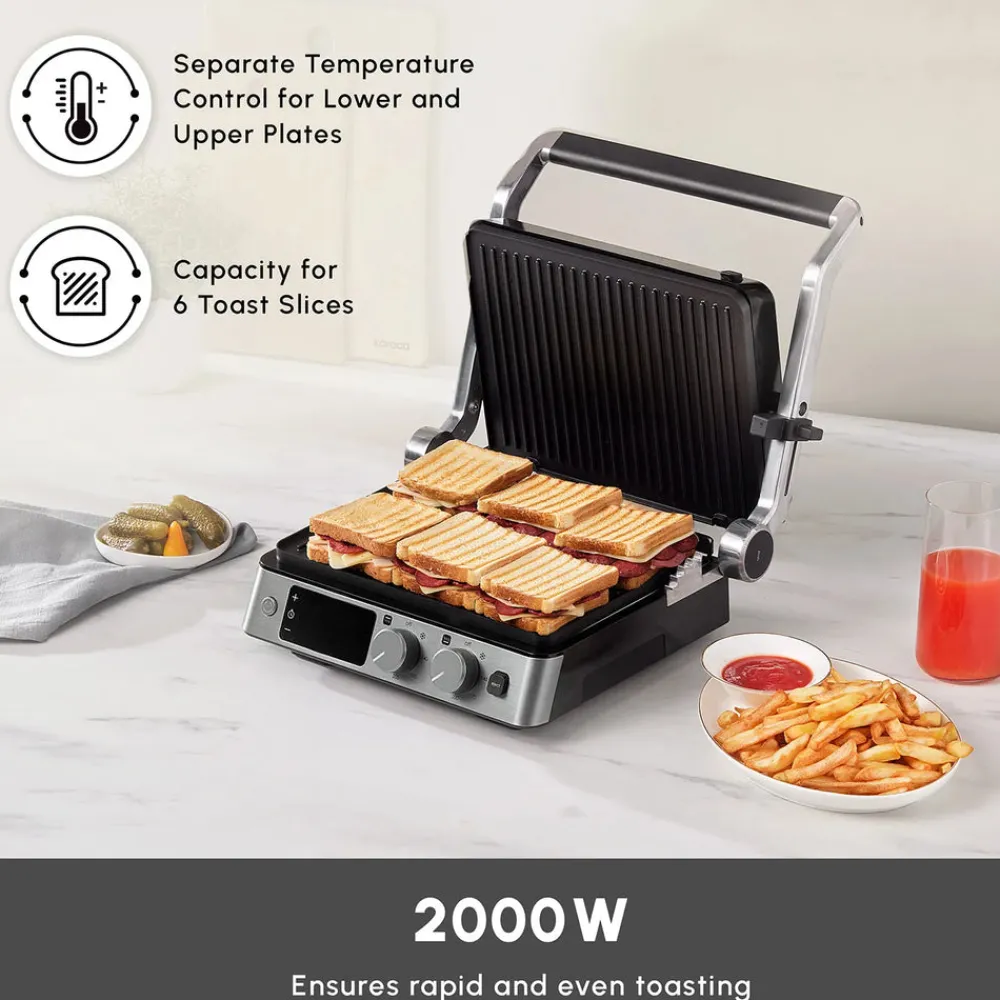 Enjoy the convenience of preparing 6 slices of toast at once, grilling delicious dishes at 230 degrees Celsius, and barbecuing with its 180-degree opening capability.