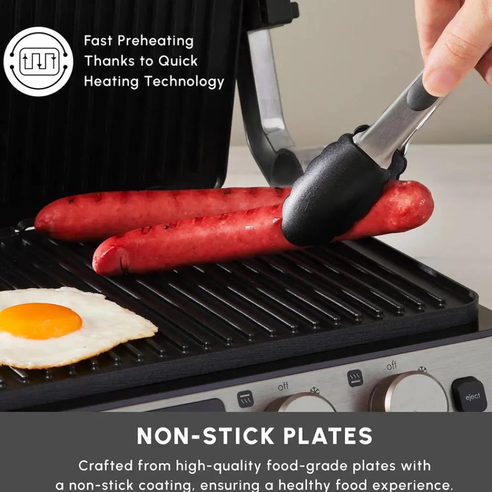 Specially developed Quick Heating technology ensures even heating of the non-stick cast iron plates in approximately 4.30 minutes, allowing for quick preparation of toast in just around 2 minutes.