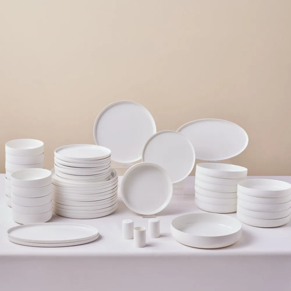 Karaca Earth Collection Matte Glaze 55-Piece Porcelain Dinner Set for 12 People, White