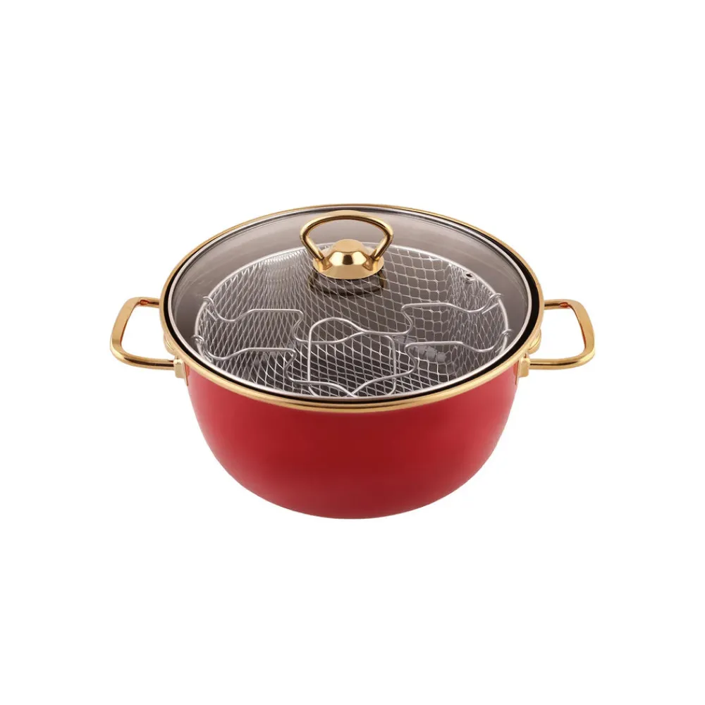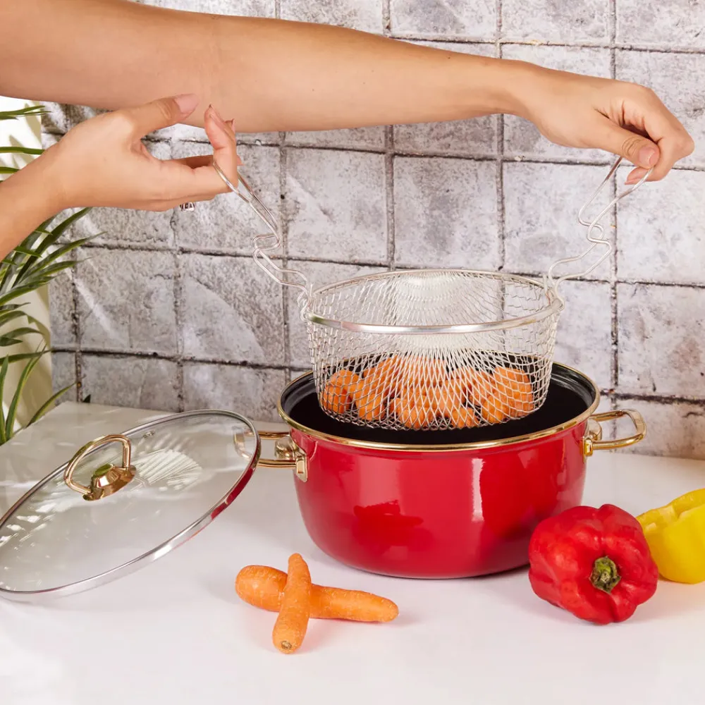 Karaca Love of Kitchen Enamel Induction Frying Pot, 22cm, Red
