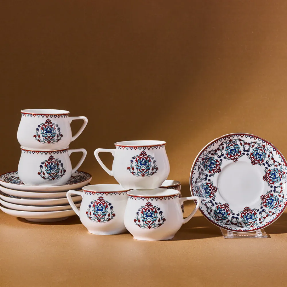 Karaca Nakkaş 12 Piece Porcelain Espresso Turkish Coffee Cup Set for 6 People, 100ml, Multi