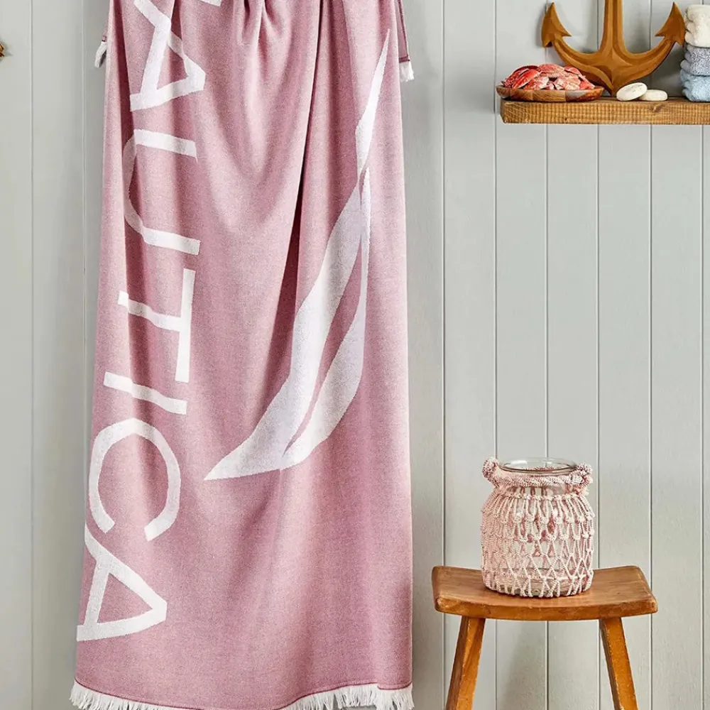 Nautica Home J Logo 100% Turkish Cotton Peshtemal Towel, 100cmx170cm, Pink