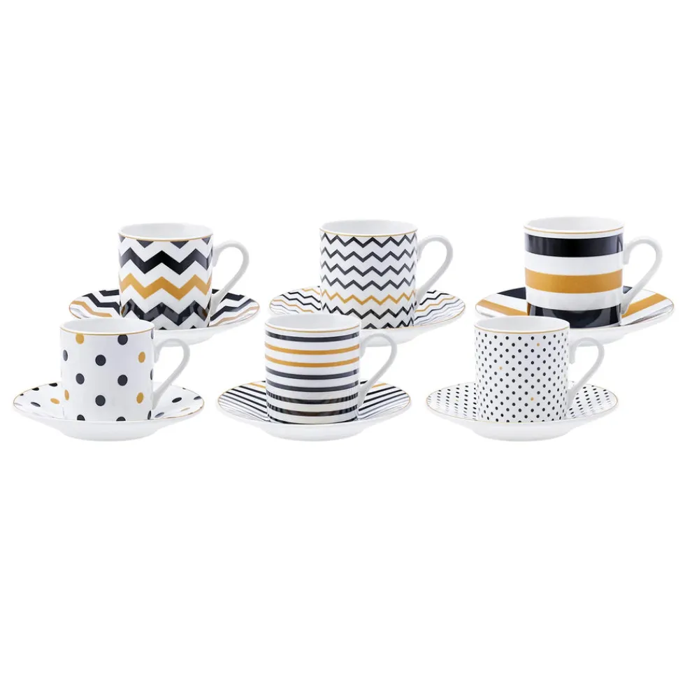 Karaca Nossa 12 Piece Porcelain Espresso Turkish Coffee Cup for 6 People, 80ml, Multi