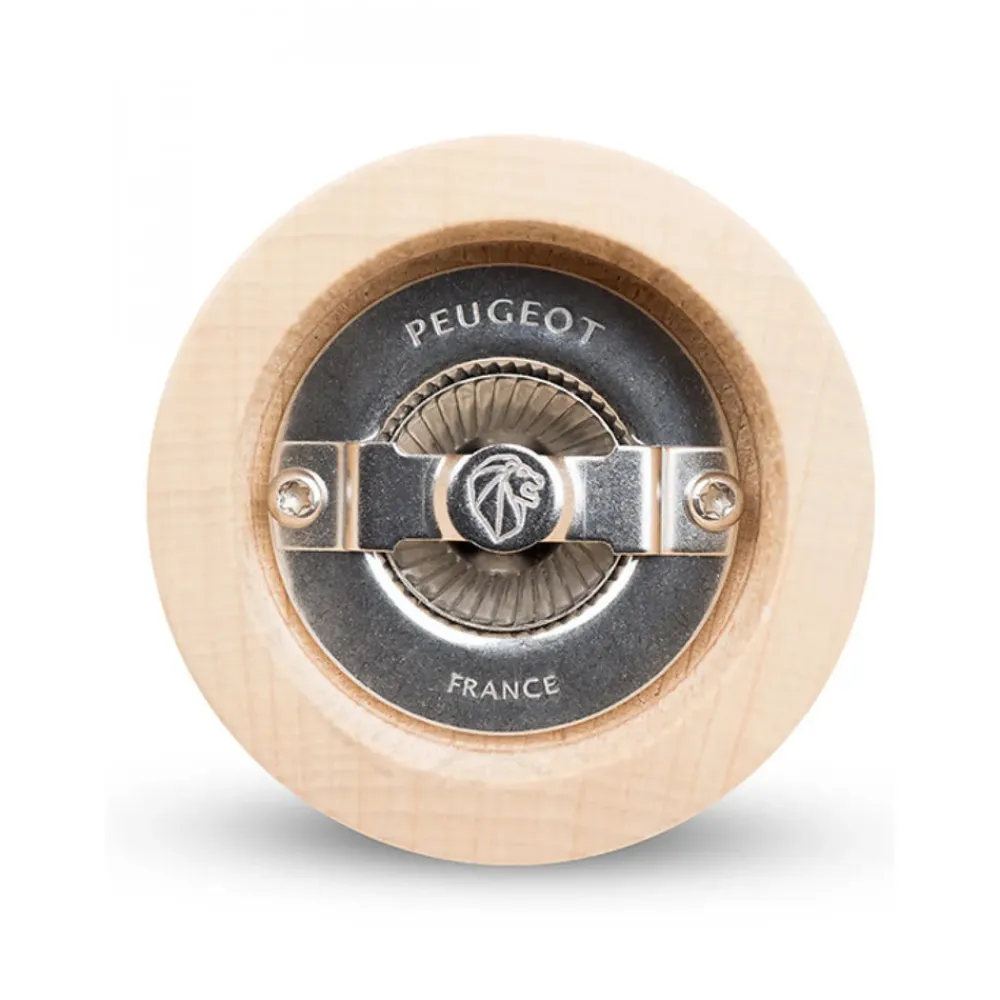 The iconic 7-inch Paris salt mill showcases Peugeot’s deep affinity for its signature materials, including wood and steel. Crafted from upcycled wood, the Nature mill reflects Peugeot’s strong commitment to sustainability and environmental protection. Featuring a distinctive top button marked with the brand’s lion head in white for salt, this mill allows for effortless adjustment of the grind setting, offering both style and functionality for your kitchen.