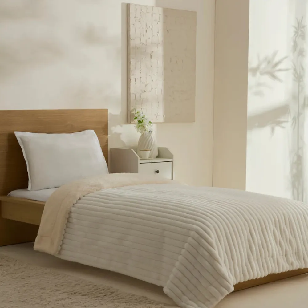 Karaca Stripe Sherpa Blanket, 150x200cm, White