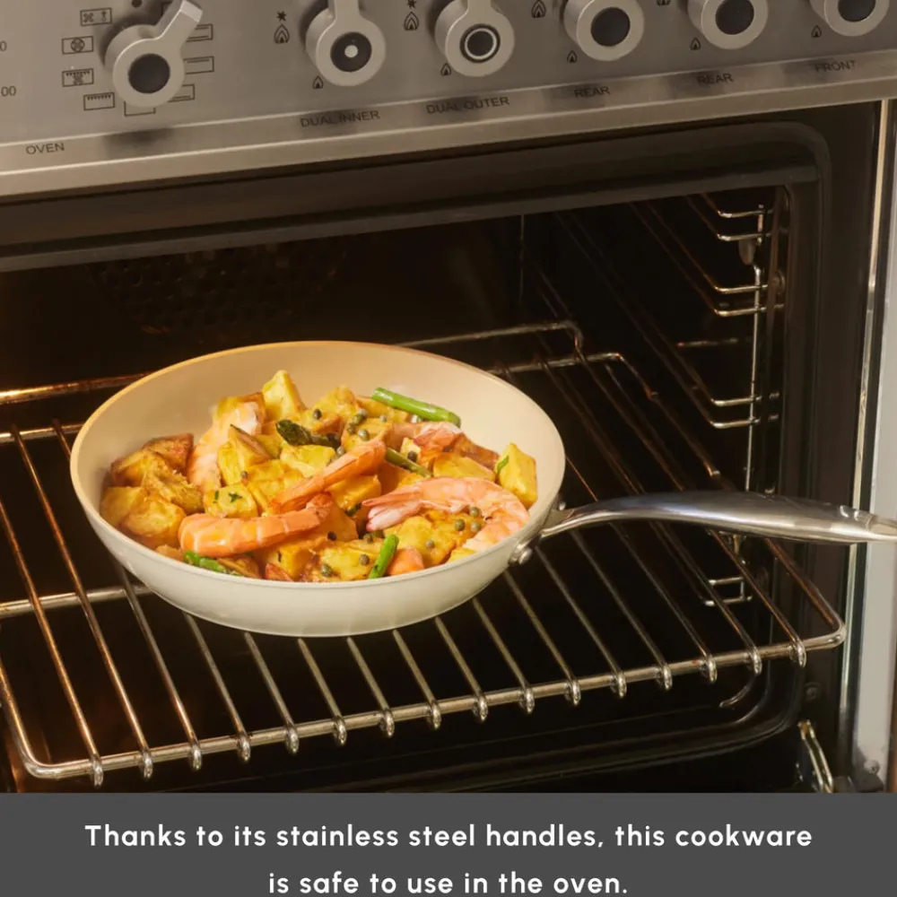 Karaca Swiss Crystal Almond Cream Non-Stick Induction Stainless Steel Handle Shallow Pan, 16cm, Cream