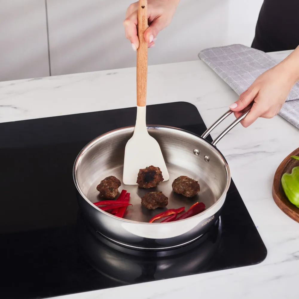 Distributing heat evenly all around, it helps you achieve perfect flavour by cooking food uniformly and consistently. The special energy capsule base, which retains heat, ensures maximum time and energy savings. Emirgan pans are healthy and durable with their non-stick interior coating and stainless steel exterior. Thus, they maintain their original appearance for years, making them a long-lasting addition to your kitchen.