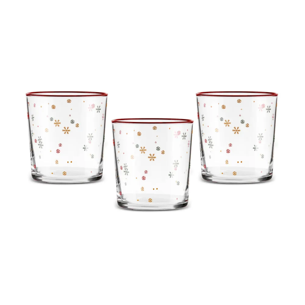 Karaca Home New Year Christmas 3-Piece Snowy Tumbler Glass Set, 380ml, Multi