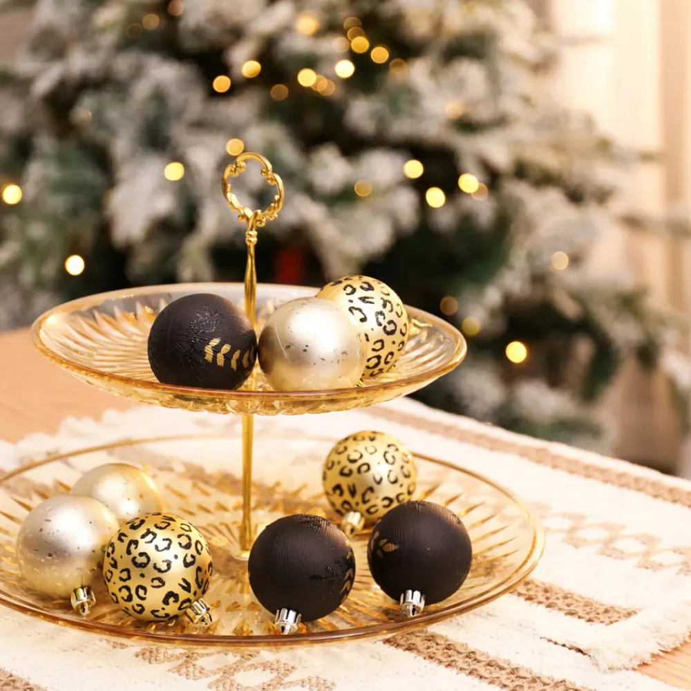 Karaca Home New Year Christmas Leopard Tree Bauble Set, 9 Piece, 6cm, Multi