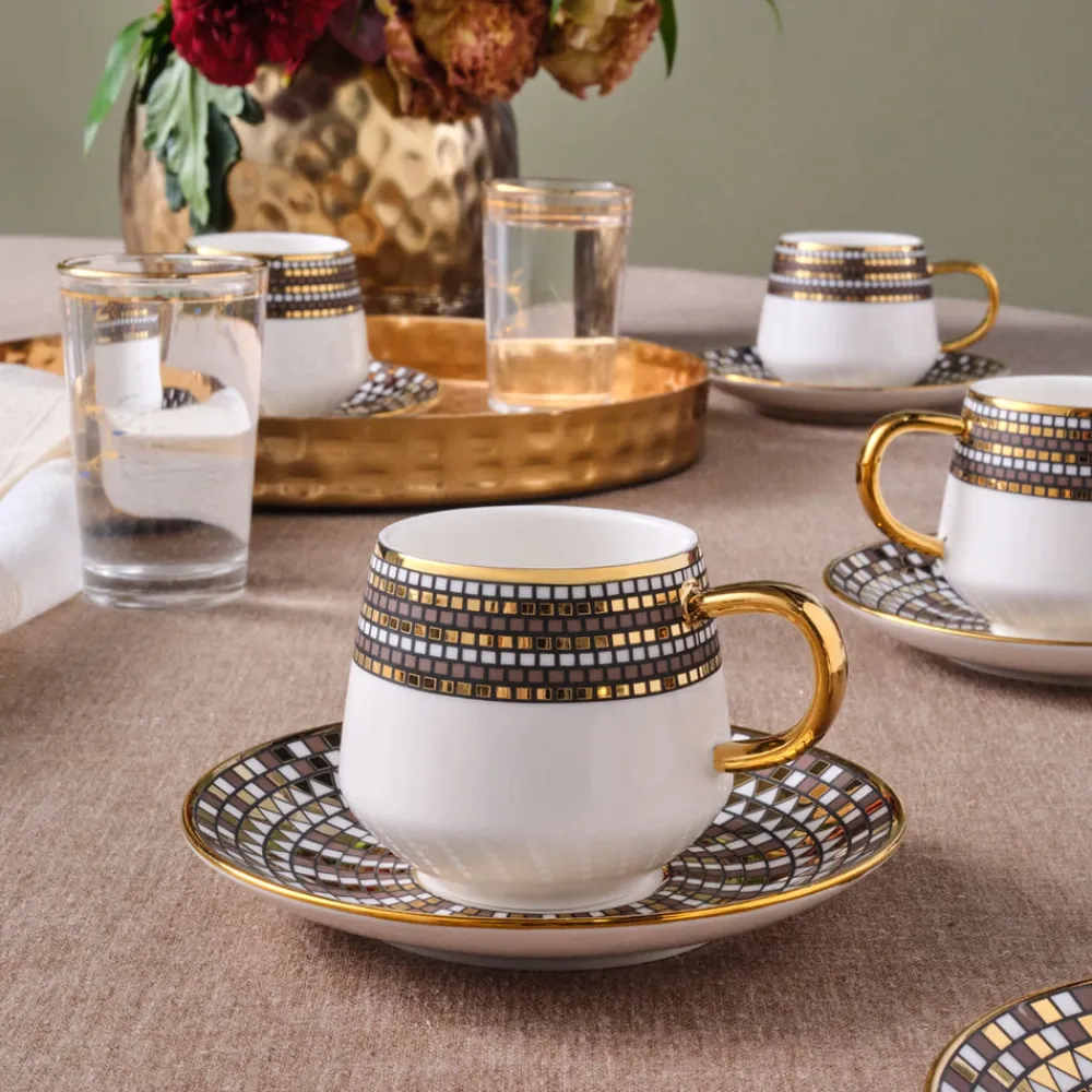 Karaca Belgin 12-Piece Porcelain Espresso Turkish Coffee Cup for 6 People, 90ml, Blue