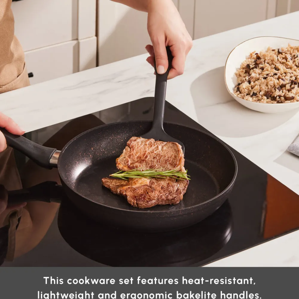 Karaca Blackgold Biogranite 15-Piece Non-Stick Induction Cookware Set, Black Gold