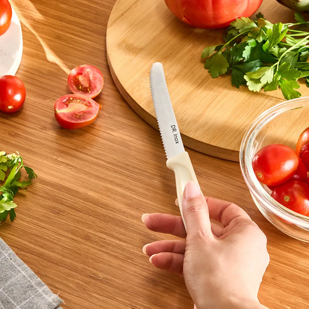 Dr.Inox Stainless Steel Tomato Knife, 22cm, Cream