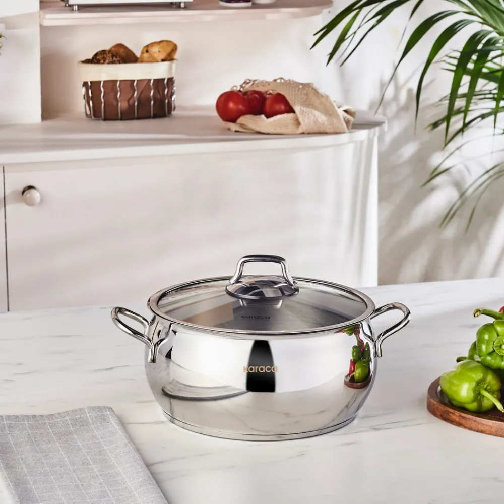 Karaca Emirgan Stainless Steel Stockpot with Lid, 24cm, Silver